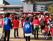 浦和レッズレディースの皆さんと国連の友ブース前にて義援金募金活動を行いました。